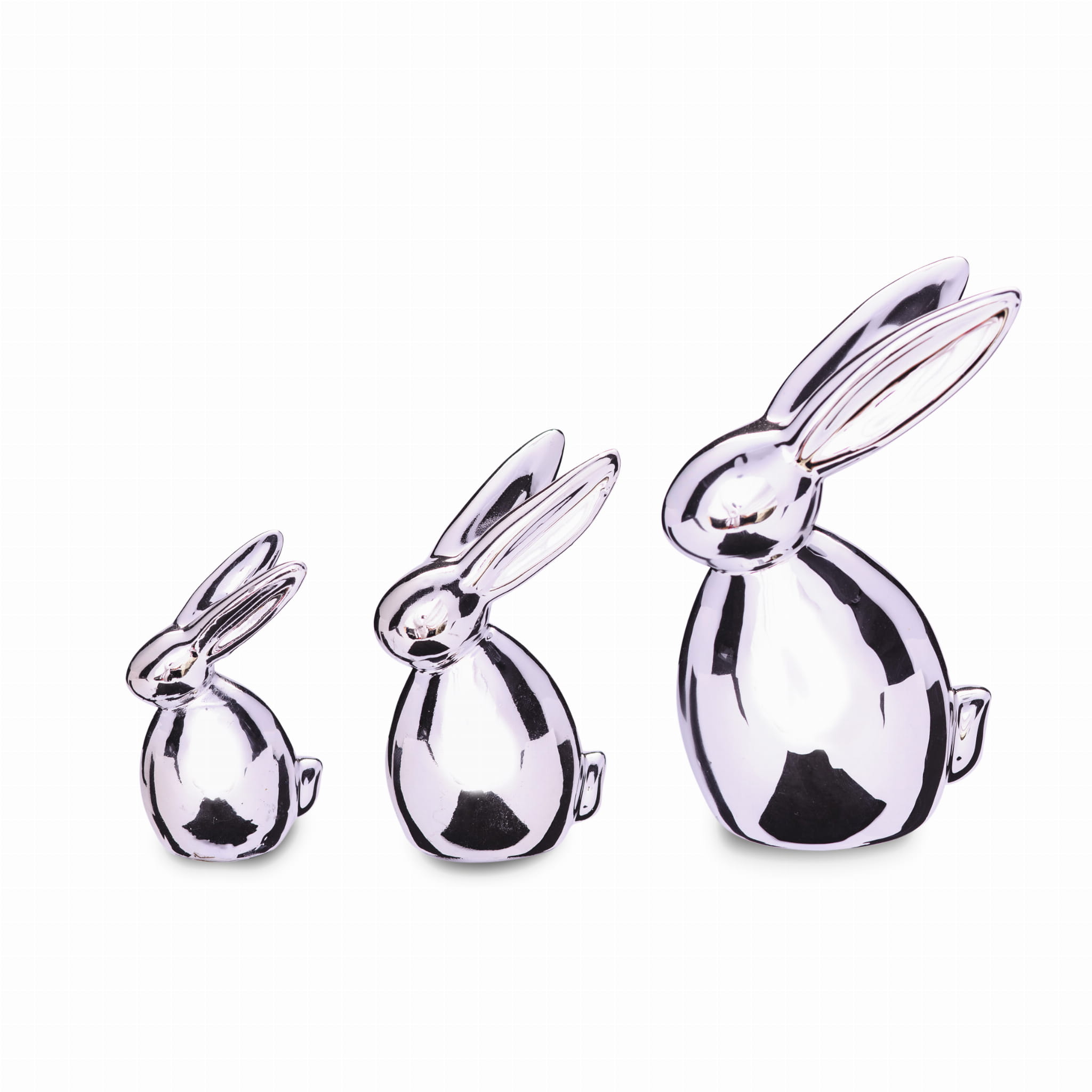 DA6317050-2S - ZAJĄCZEK, FIGURKA Z CERAMIKI 14,3 cm - SREBRNY, EFEKT LUSTRA